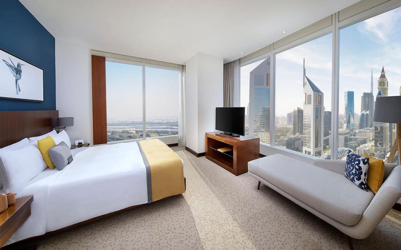 With a premium location on Sheikh Zayed Road, this 5-star hotel overlooks the Dubai World Trade Centre. It features 4 restaurants, an outdoor pool and spacious meeting rooms.